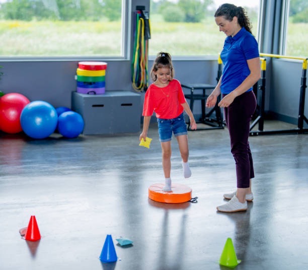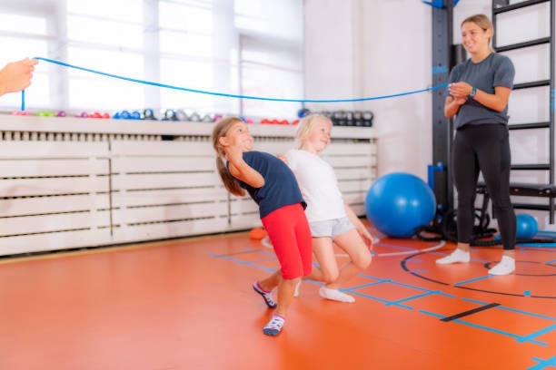 リズム体操や柔軟、コーンマーカー、ミニハードルなどの器具を使用して楽しくトレーニング